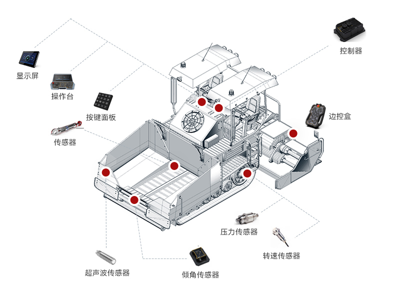 必一運(yùn)動(dòng)智能攤鋪機(jī)解決方案整合了感知技術(shù)、自動(dòng)控制系統(tǒng)和數(shù)據(jù)分析算法,實(shí)現(xiàn)了攤鋪機(jī)高度智能化操作。通過(guò)實(shí)時(shí)獲取路面信息和實(shí)時(shí)調(diào)整施工參數(shù),使攤鋪機(jī)操作更加精準(zhǔn)、高效和可靠。