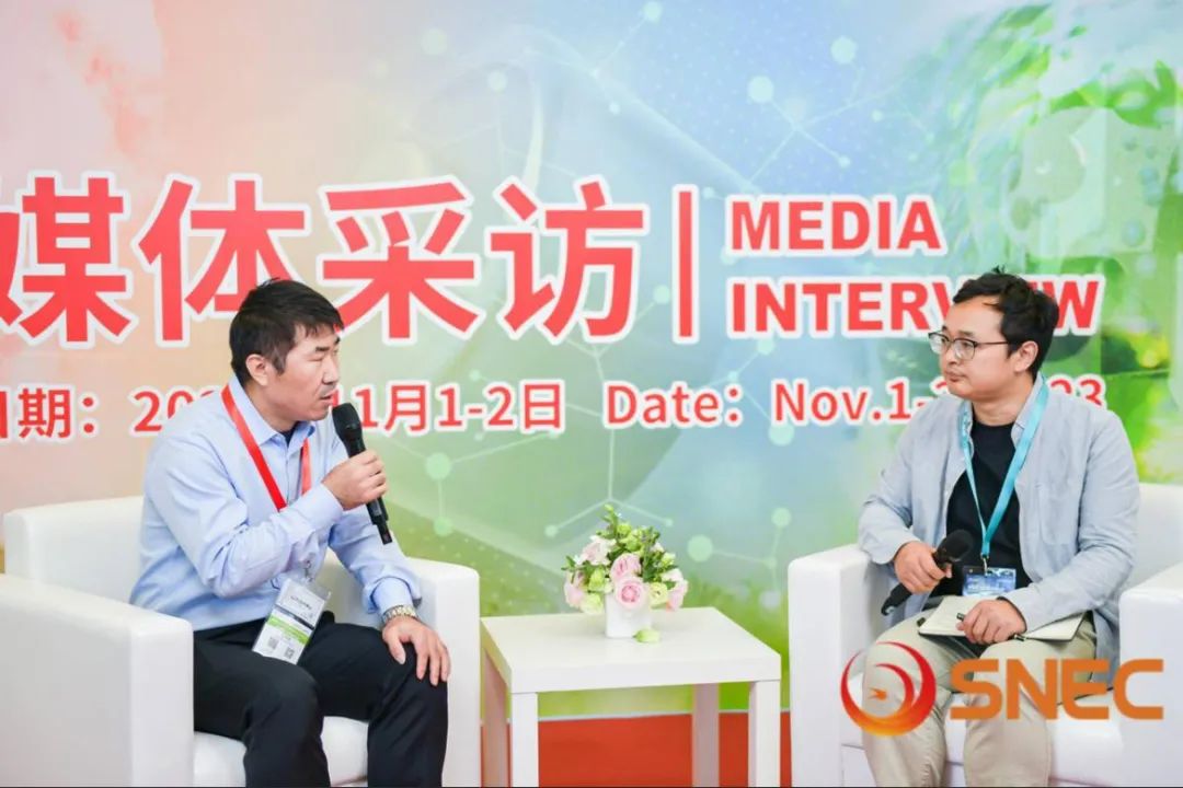 ▲必一運動技術(shù)總監(jiān)趙展展先生接受SNEC媒體采訪